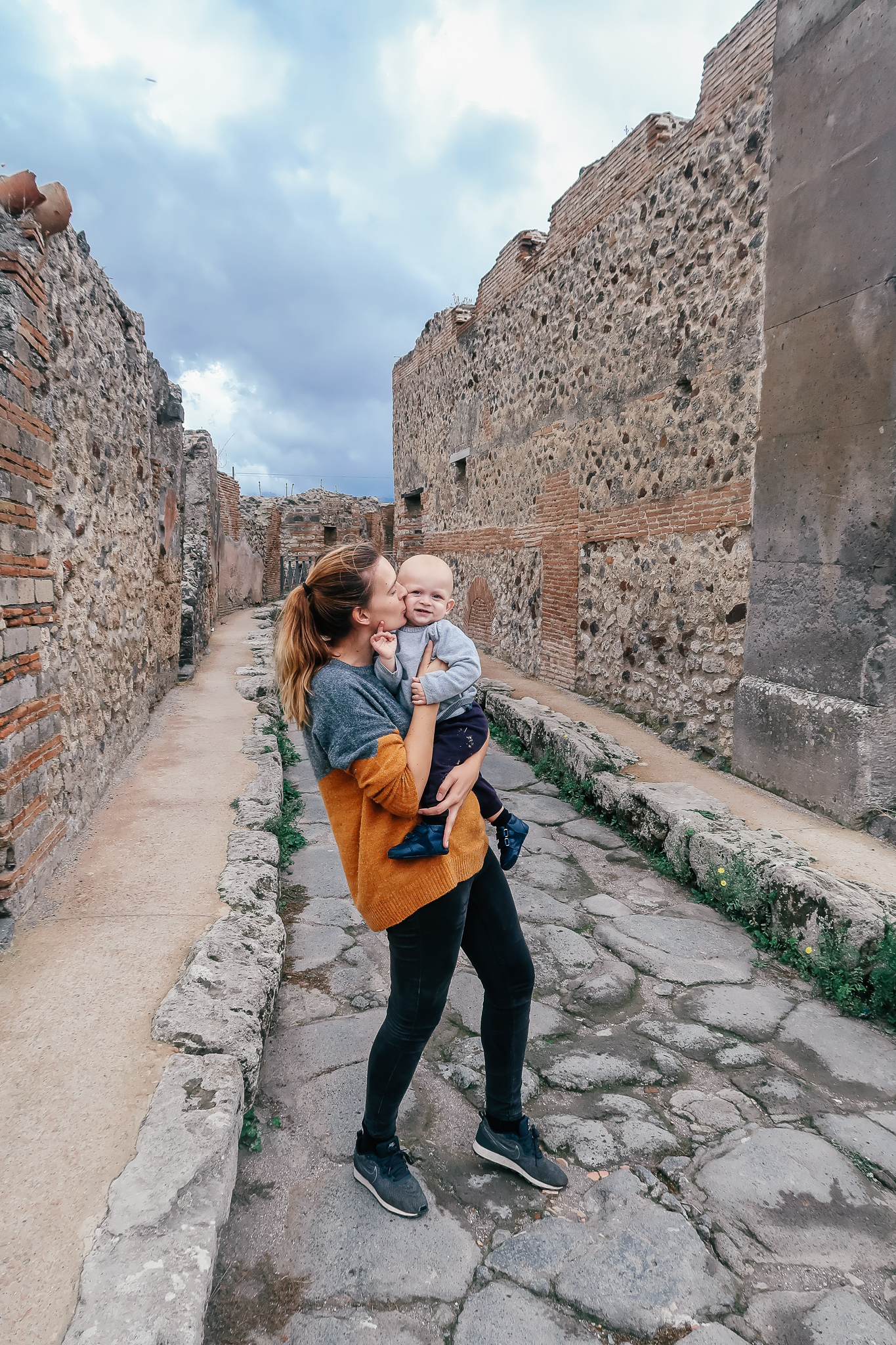 - De gipsafstøbte ofre: Rundt omkring i byen kan du se gipsafstøbninger af de mennesker, der blev fanget af vulkanudbruddet. De giver en rørende og dramatisk påmindelse om katastrofen. Disse afstøbninger blev lavet ved at hælde gips i de hulrum, som de nedbrudte kroppe efterlod i asken, hvilket skabte et præcist billede af deres sidste øjeblikke.